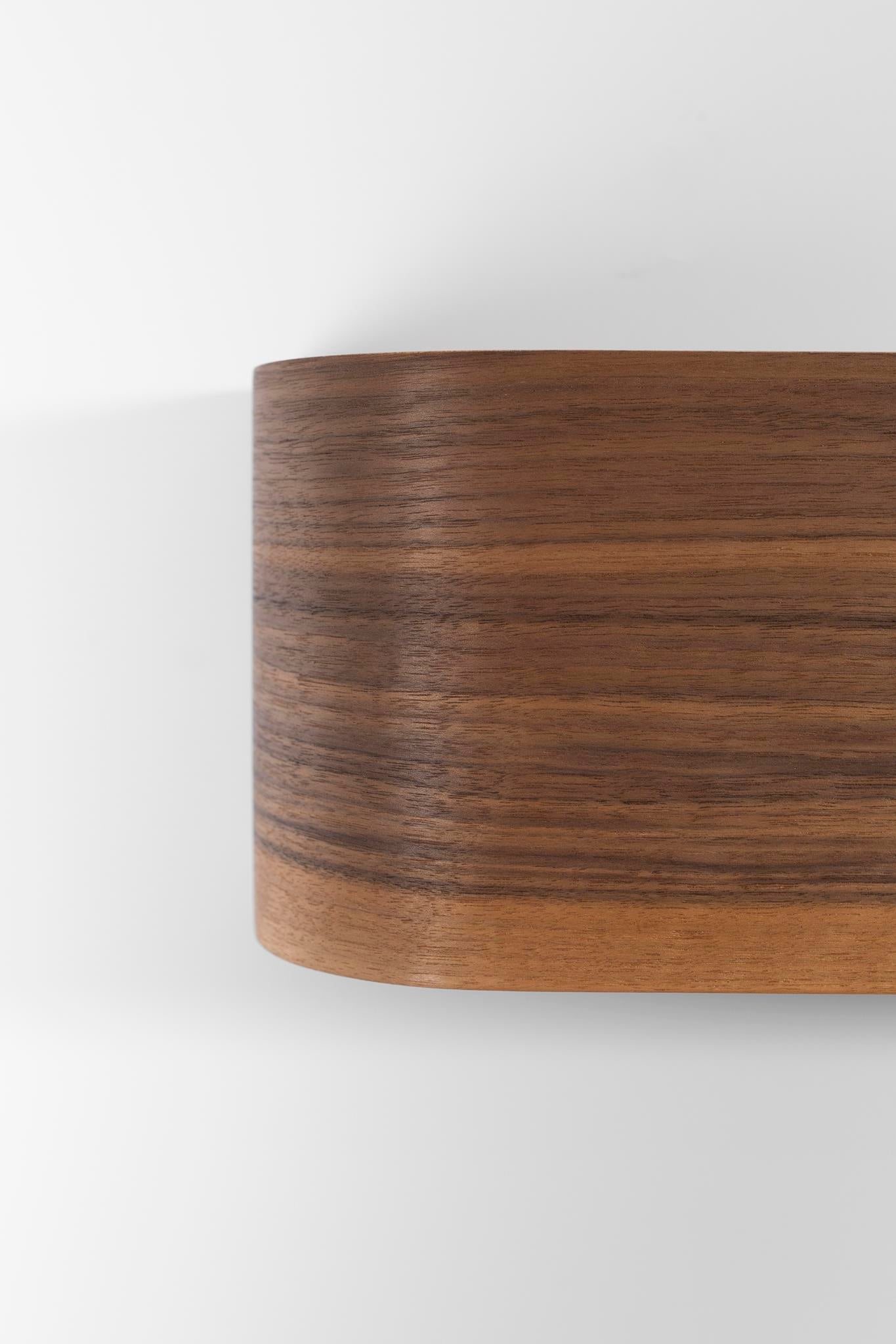 This item is made of American walnut veneered poplar plywood. The finish is acrylic matt varnish.