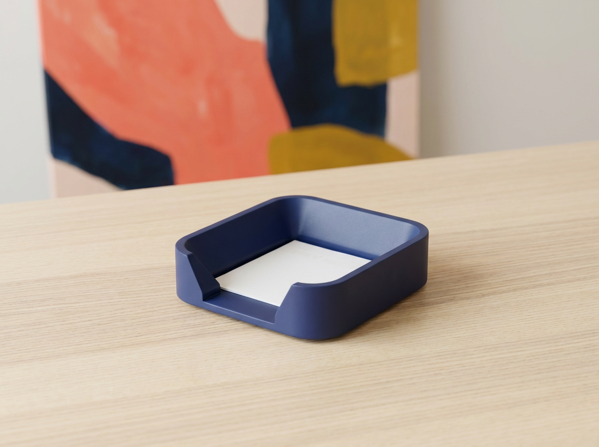 Koyu lacivert tonu, çağdaş ofis dekoru ve modern masa aksesuarlarıyla mükemmel bir uyum sağlayarak temiz ve ilham verici bir ortam yaratır. Her parça elle zımparalanmış ve elle cilalanmıştır; bu da düzenleyici setine ev ofislerinde, kurumsal ortamlarda ve yaratıcı çalışma alanlarında öne çıkan zarif bir hava katar. Hassas kesimleri ve keskin çizgileriyle, günlük eşyaları şık bir sergileme alanına dönüştürür ve dağınıklıktan uzak bir masa düzeni sağlar.